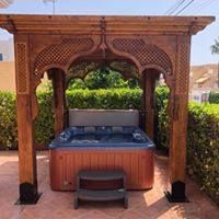 The customer desired a Moroccan style pergola with special effect lighting to protect the hot tub and offer the perfect relaxation place.
