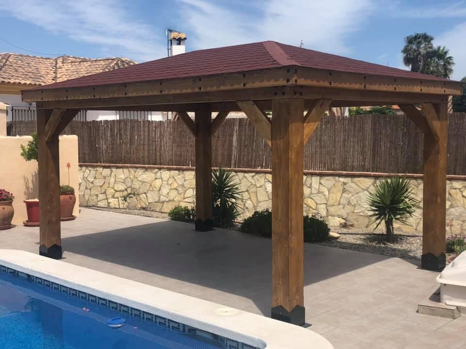 Poolside Pergola constructed to the customers requirements, providing plenty of shade from the hot sun.